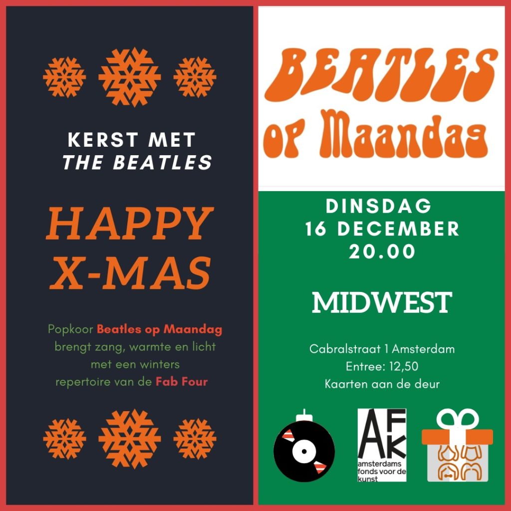 Het koor Beatles op Maandag geeft een speciaal kerstconcert in Midwest. Verwacht een selectie van bekende en minder bekende Beatles-nummers die het hart verlichten. Een toegankelijke avond voor iedereen die houdt van zang en de Fab Four.