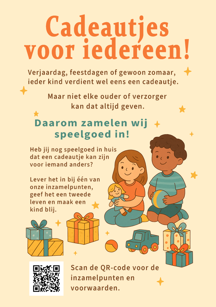 Of het nu een verjaardag is, de feestdagen of gewoon zomaar, ieder kind verdient wel eens een cadeautje. Maar niet elke ouder of verzorger kan dat altijd geven. Dankzij het weggeefwinkeltje kan oud speelgoed weer nieuwe avonturen gaan beleven en een ander kindje blij maken!